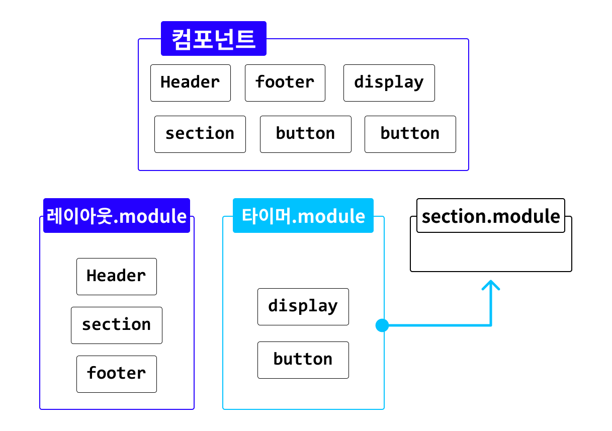 위 속성에 각각의 부품들을 정리하여 c컴포넌트가 어떻게 구성되어 있는지 한 눈에 볼 수 있다. 아래와 같이 조합자의 성격에 따라 컴포넌트를 조합해 모듈을 만들 수 있을 것이다.
